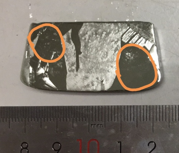 同样的,半导体晶体也分单晶和多晶。自然结晶的大部分是多晶,在多晶中有小块的单晶存在,如图中画圈的部分是单晶。