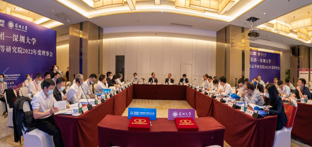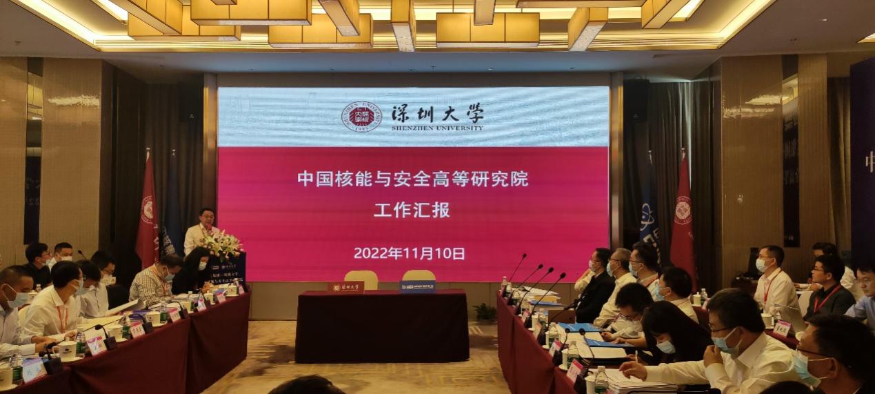 2022年11月10日上午,中核集团-深圳大学中国核能与安全高等研究院(简称“核高院”)2022年度理事会在深圳顺利召开。中核集团党组成员、副总经理曹述栋一行,中核集团总经理助理、中国宝原党委书记、董事长孟琰彬一行,中国核动力研究设计院院长王丛林一行,广东市场开发部主任、深圳中核集团有限公司党委书记、董事长李志煌一行,同方股份有限公司党委委员、董事会秘书张健一行,我校中国科学院院士、校长毛军发,副校长张学记,物理与光电工程学院执行院长、核高院院长刘永一行等出席会议。会议由曹述栋主持。