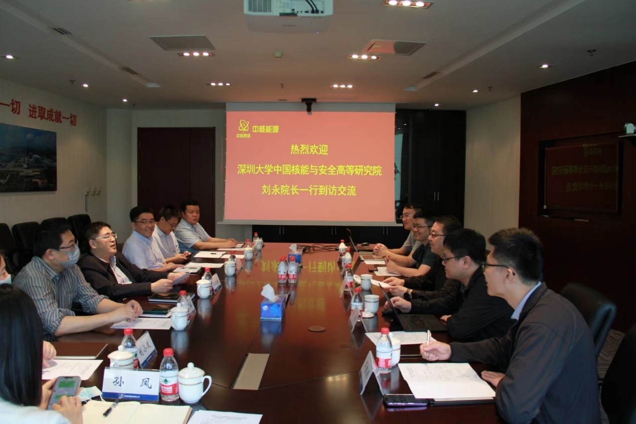 5月30日下午,深圳大学物理与光电工程学院执行院长,中国核能与安全高等研究院(简称“核高院”)院长刘永、核高院副院长黄熙、院长助理王吉浦、副总工程师龚星、平台办主任董晓朦一行访问了中核能源科技有限公司(以下简称“中核能源”)。中核能源党委书记、董事长王秋林,党委委员、副总工程师、工程化研究中心主任陈景,公司人力资源部、秘书部、设计研究院、计划经营部、工程化研究中心相关人员参加了交流活动。