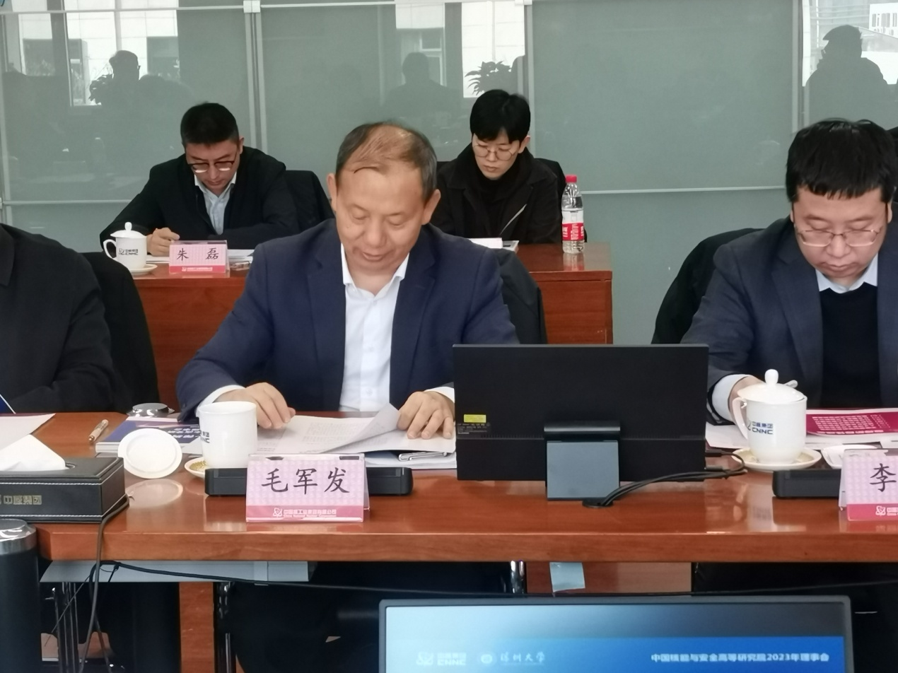 12月18日下午,深圳大学中国核能与安全高等研究院(简称“核高院”)2023年度理事会在北京中核集团总部召开,集团副总曹述栋理事长主持会议,我校校长毛军发副理事长、周辉副校长作为新晋理事、以及其他理事和理事代表、各成员单位领导,核高院刘永院长、罗景庭执行院长及核高院其他领导等出席了本次理事会。
