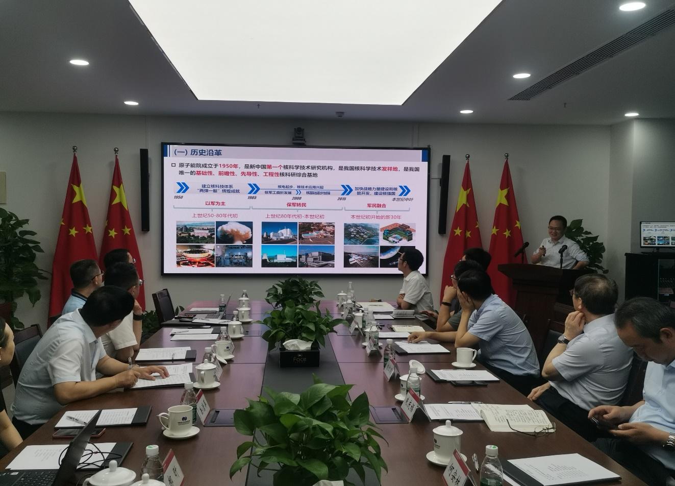 刘永院长向原子能院详细介绍了核高院的基本建设情况、研究方向、科研成果、未来发展规划和筹备建设中的重要科技平台、科学装置等。核高院在较短时间内发展态势迅猛,已形成先进核能与技术开发、核数字化与系统工程、核设施运行状态智能监测技术与故障诊断、辐射防护与核安全、核设施退役与放射性废物治理、医用技术与医疗技术等六大研究方向。近二年来,核高院在中核集团与学校的关心支持帮助下,始终服务国防军工事业与核工业的使命要求,尤其在人才引育、师资队伍、科研平台、科技创新、社会服务等方面做了大量卓有成效的工作,国际合作方面也做的很实,目前已从瑞士、德国、南非引进 3 名外籍教授加盟核高院,每个人都带有任务和目标,这是国际合作的经验案例。谈到未来发展规划,刘院长更是一片雄心壮志,为更好地服务国家核行业发展需求与河套深港创新合作区发展规划,计划由核高院牵头,协同中核集团相关单位,打造一流的核产业创新发展中心。